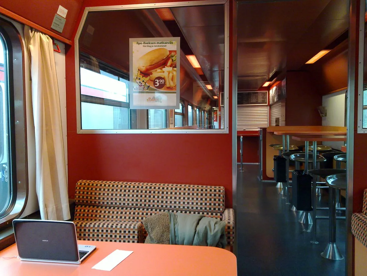 The restaurant car is a popular gathering spot that serves hot meals and traditional Finnish snacks and drinks. You can enjoy a warm bowl of salmon soup while watching the white landscape pass by your window. These dining cars are located in the middle of the train for easy access from all passenger carriages. Many travelers enjoy sitting in the restaurant car to meet other people and share stories about their winter adventures.